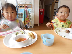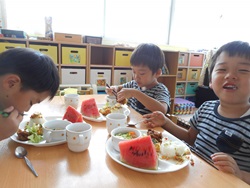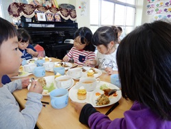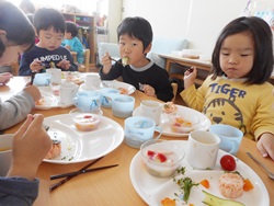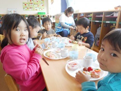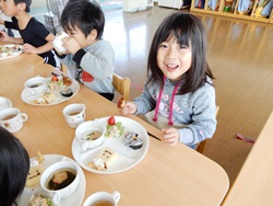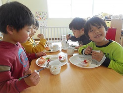 ひまわり組さん最後のお誕生日会 友だちと楽しそうにたべてました。 ちょっとさみしいですね。