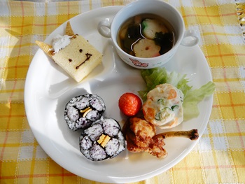 おにぎりは黒ゴマで‘くり’のつもりでしたが、わかってもらえず