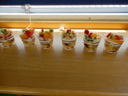 みんなでつくったパフェも、はなをそえて美味しそうでした。