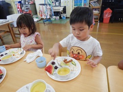 あんぱんまんの顔 最後まで残して、 ゆっくり食べている子もいてほほえましかったです。