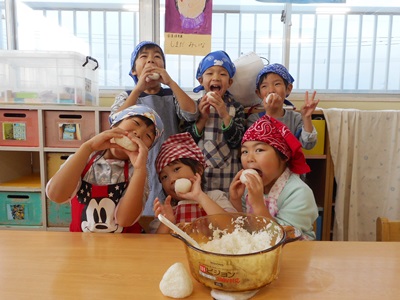実はこのお米、ひまわり組さんが夏に田植えをし、秋に収穫したものです。