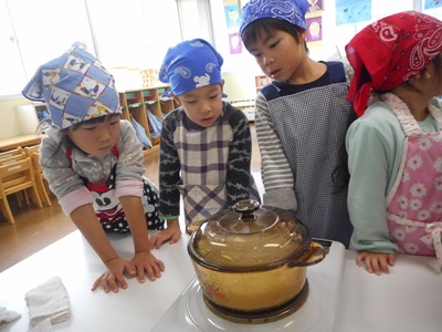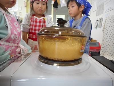 どんどんお水がなくなって、代わりにお米がふくらんでいきます。