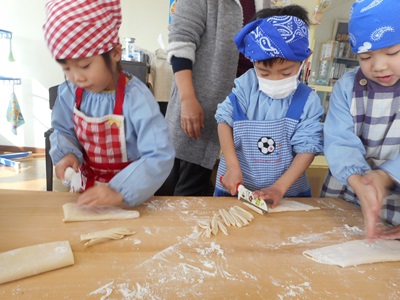 きれいにのばせた生地を切っていきます。