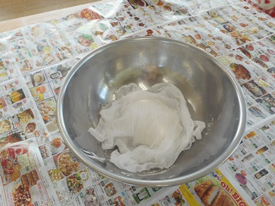 まとまった生地は濡れ布巾をかけ30分休ませます。