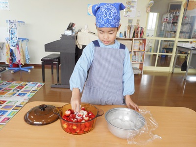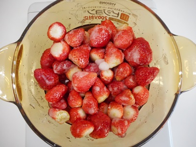 イチゴは800gありました。砂糖はその30%なので240gです。