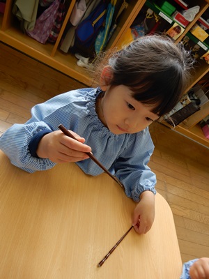 お箸の持ち方がわかったら、お箸の先をパカパカしてみます。